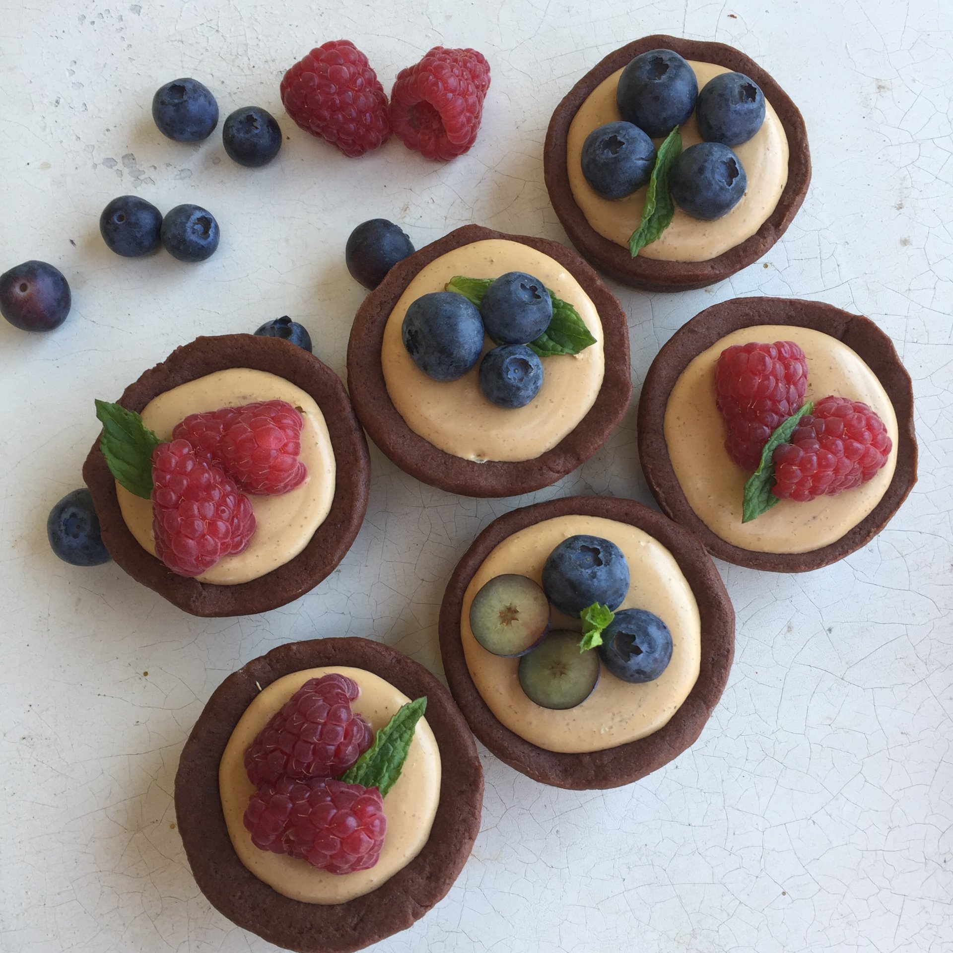 Ve větší míse si smícháme mouku, cukr, kakao a máslo. Pak přidáme zbytek a zda-li se nám bude těsto drolit, přidáváme po lžících mléko. Těsto si necháme na 45 minut odpočinout v ledničce. Poté vtlačíme do silikonové formy na muffiny a dáme do mrazáku na hodinku. Formu se zmrzlým těstem přikryjeme alobalem a pečeme na 180° asi 20 minut.